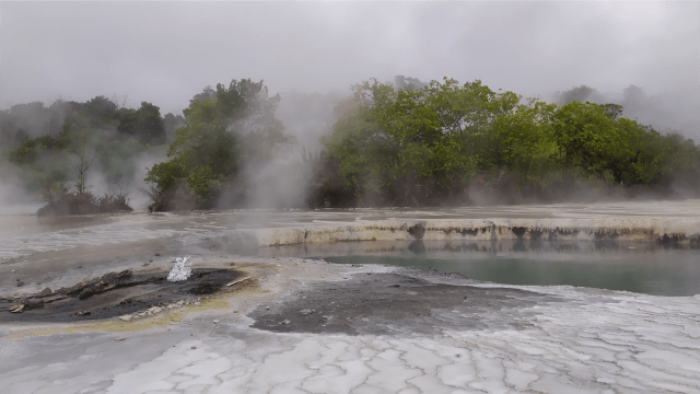 2. Kolam Air Panas Berwarna Hijau Kebiruan